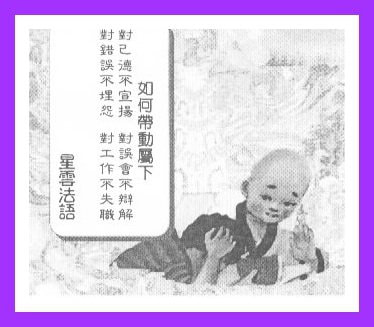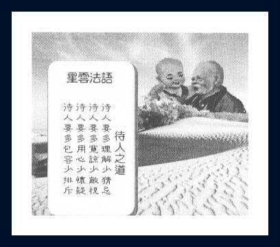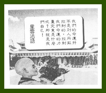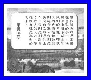 Bersama-sama dengan semua penganut Buddha yang ikhlas, kita akan berpegang teguh dengan Dharma, meletakkan Dharma di atas segala-galanya, kita sanggup bersatu dan bekerjasama untuk menyebarkan agama Buddha ke seluruh dunia.